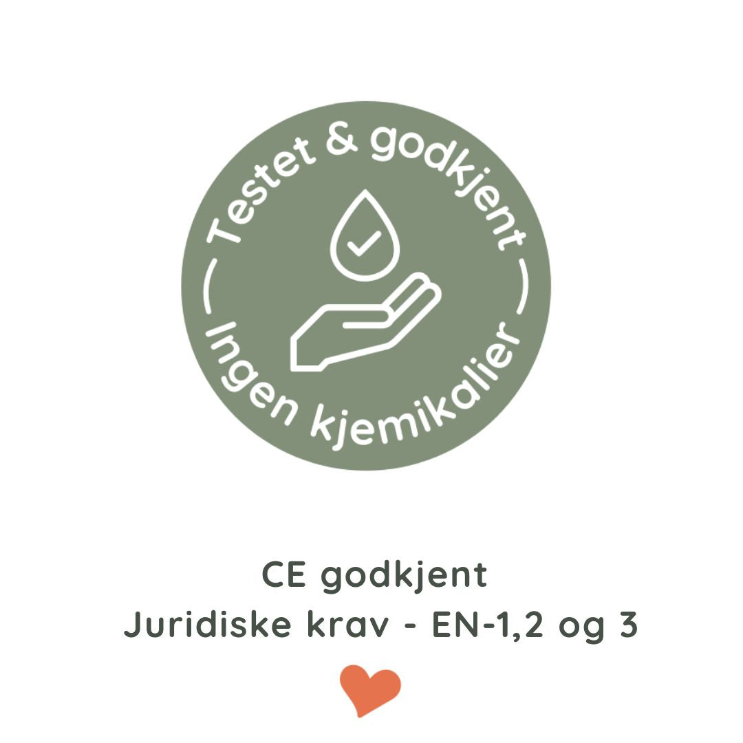 FLOOFERS® er CE-merket jfr. leketøysdirektivet og oppfyller dermed kvalitets- og sikkerhetstestene EN 71 – del 1, 2 & 3. Typegodkjent med utvidet kjemisk testing.